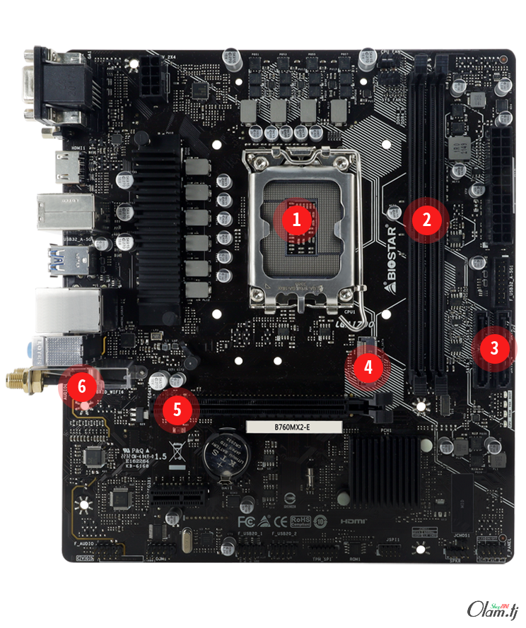 | 6 | 1 x WiFi M.2 Key E Socket |